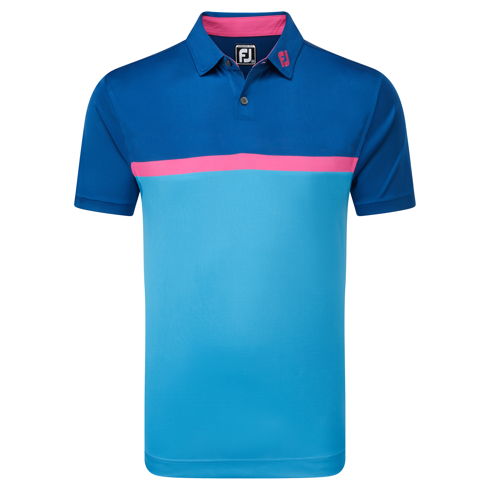 - Colour Block styling with chest stripe and matching collar stand